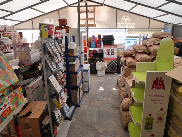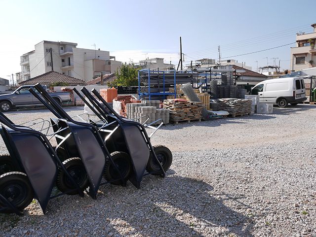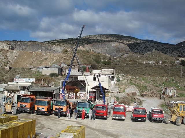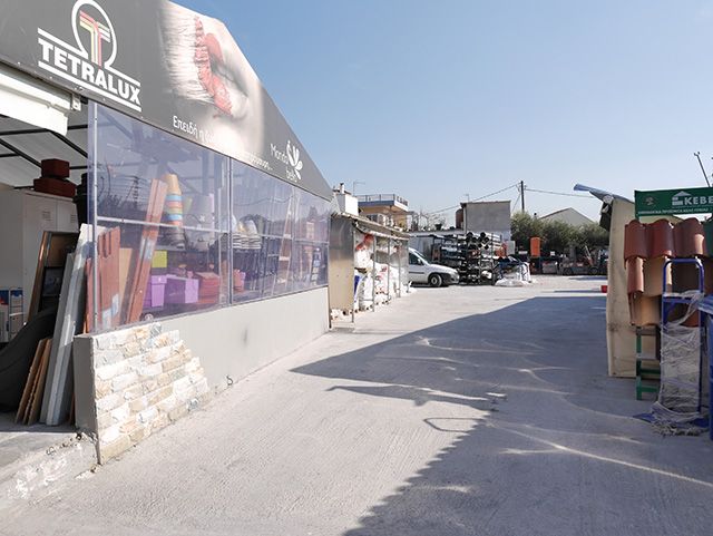 Στον πραγματικά μεγάλο και επιβλητικό χώρο της βιοτεχνίας, εκτός από την παραγωγή μαρμαρόσκονής και ψηφίδων, υπάρχουν οικοδομικά υλικά όλων των ειδών από την Ελλάδα ή το εξωτερικό.